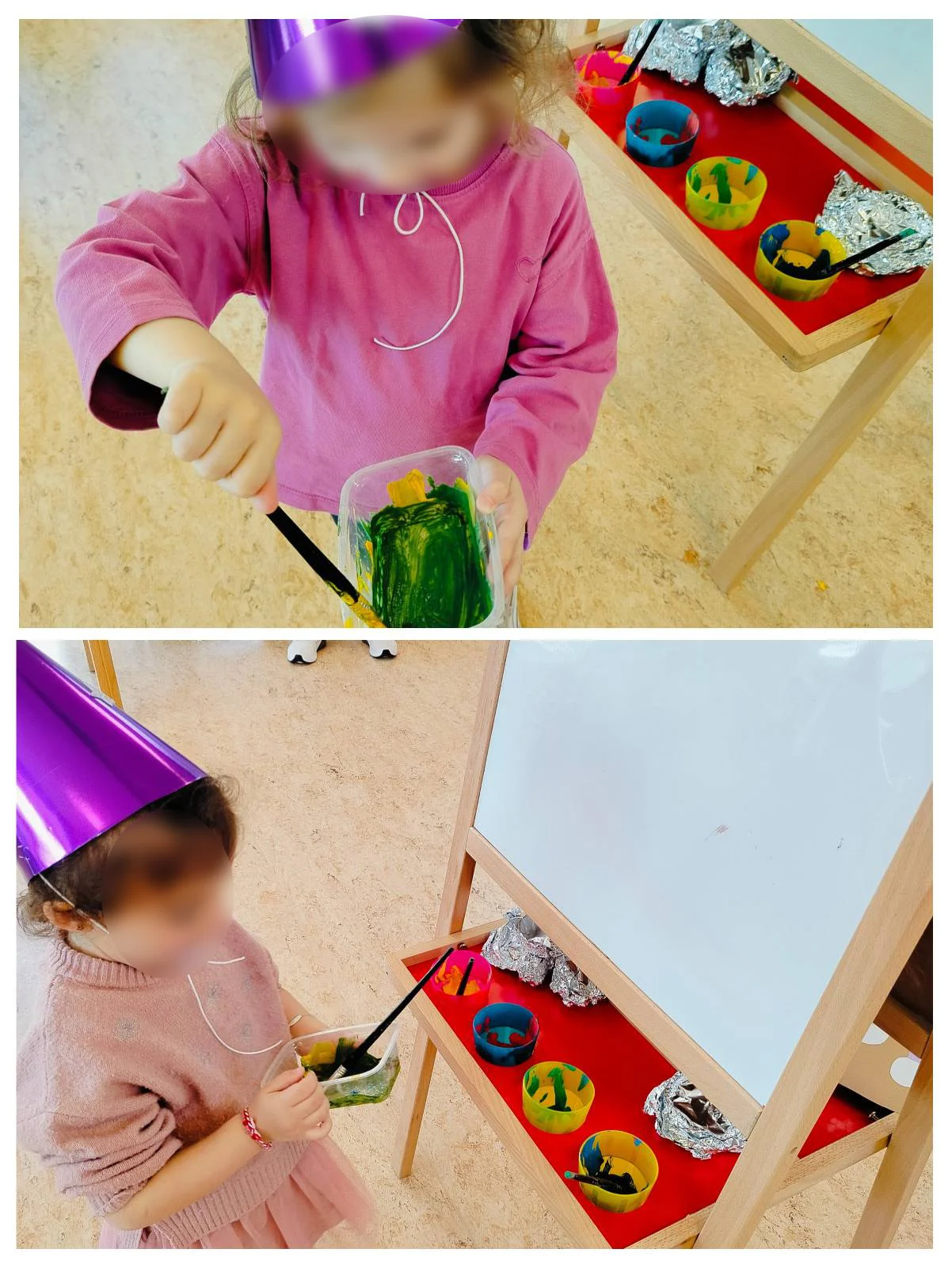 Πήραμε πινέλα και χαρτιά και ανοίξαμε τα κουτάκια με τις μπογιές μας. Γιατί όταν μαθαίνουμε τα χρώματα ,μαθαίνουμε να βλέπουμε τον κόσμο πιο φωτεινό, πιο χαρούμενο.